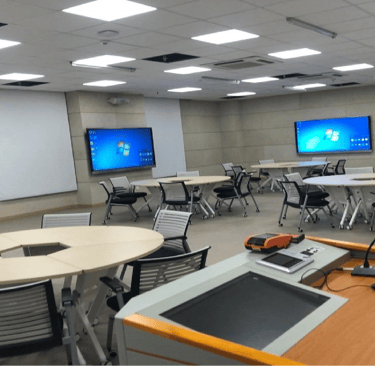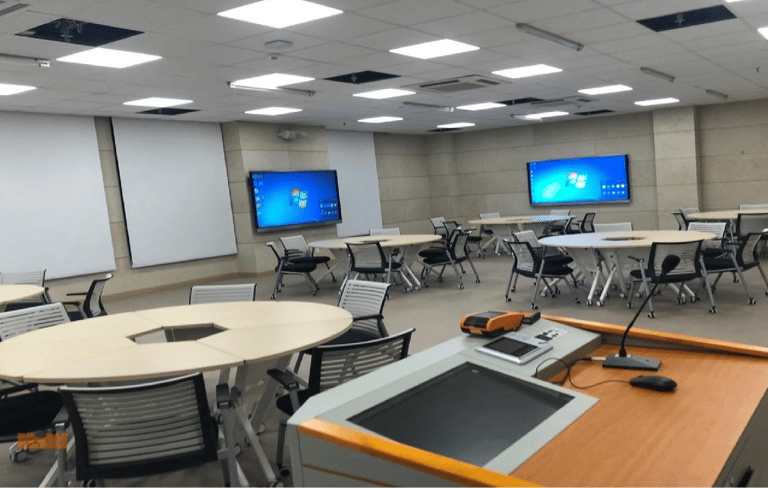 조명, 기후 및 채광 제어: 통합 제어 장치(ICU)는 교실 환경 관리에 핵심적인 역할을 합니다. 조명 시스템과 연결되어 선생님들이 수업 목적에 맞게 밝기를 조절할 수 있습니다. 예를 들어, 멀티미디어 위주의 수업에서는 조명을 어둡게 하여 프로젝션 스크린의 가시성을 높일 수 있습니다. 이 장치는 또한 에어컨 시스템을 제어하여 학생과 선생님 모두에게 쾌적한 온도를 유지합니다. 게다가 창 블라인드나 셰이드도 수동으로 조작하거나 환경 센서를 기반으로 자동으로 동작할 수 있습니다. 햇빛이 너무 밝을 경우 블라인드가 자동으로 조절되어 수업용 스크린의 눈부심을 줄일 수 있습니다.
